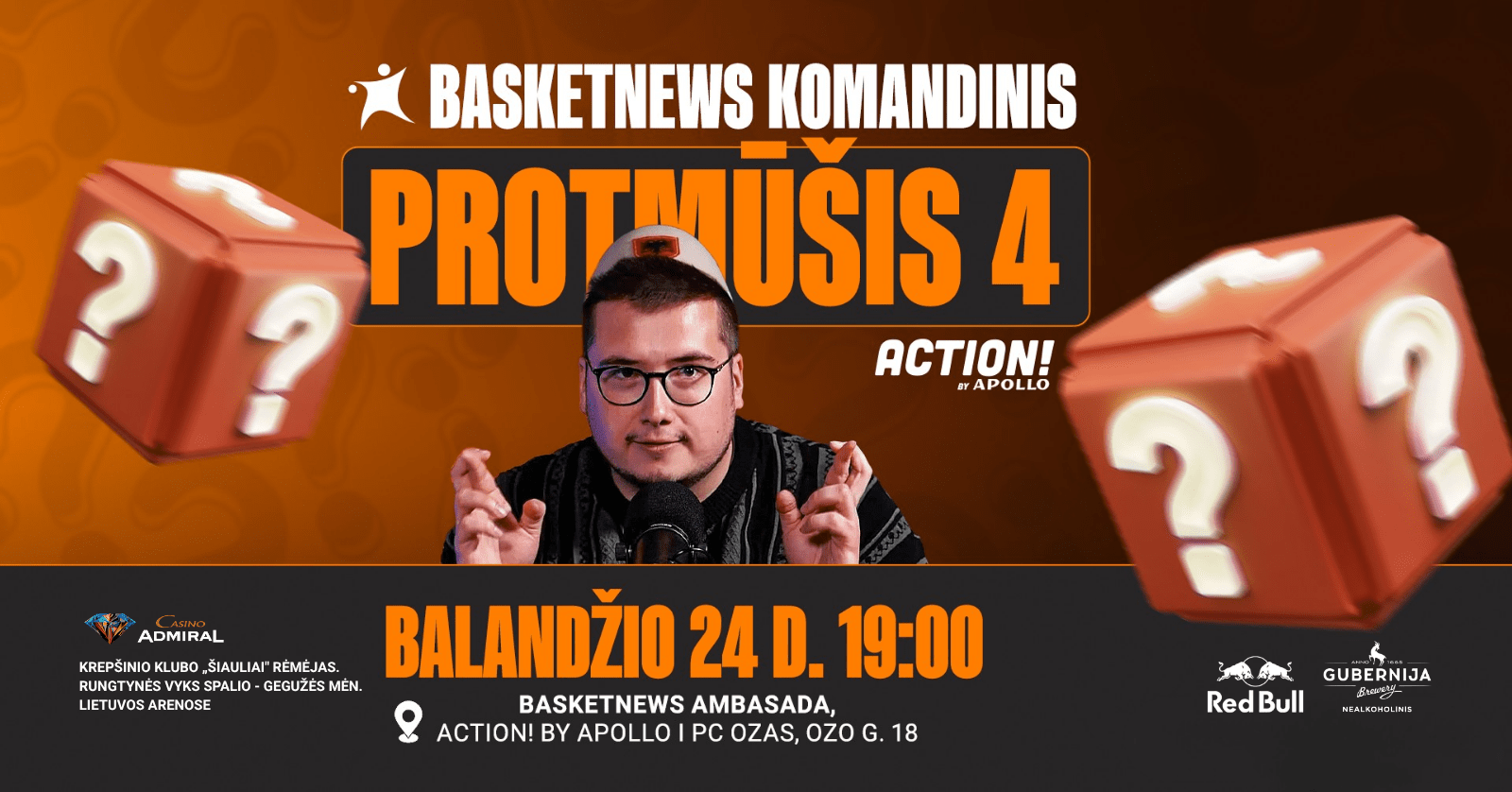 BasketNews ambasada kviečia į krepšinio fanų susibūrimo vietą „Action by Apollo“ pramogų centre – čia laukia smagus laikas ir tikra arenos patirtis! Svarbiausių varžybų transliacijos vyksta „Action by Apollo“ SPORTO ARENOJE – su didžiuliu ekranu, galingu garsu ir atmosfera, kuri leidžia pasijusti lyg sėdėtum tribūnose. Čia rasi naujausią varžybų kalendorių, aktualias naujienas ir specialius pasiūlymus krepšinio fanams.